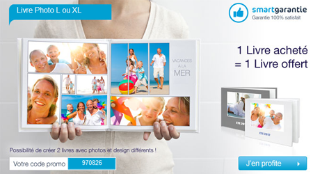 Du nouveau et du très lourd du côté des offres promotionnelles relatives aux livres photo chez Smartphoto ! En effet, Smartphoto propose une offre irresistible : pour toute première commande d’un livre photo, profitez d’un livre photo offert ! Vous avez le choix parmis 5 modèles de livres photo : Livres photo L carré, portrait, paysage (spirale, couverture souple, couverture rigide ou sans design) et les livres photo XL carré luxe ou Paysage luxe. Donc 1 livre photo acheté = 1 livre photo offert !